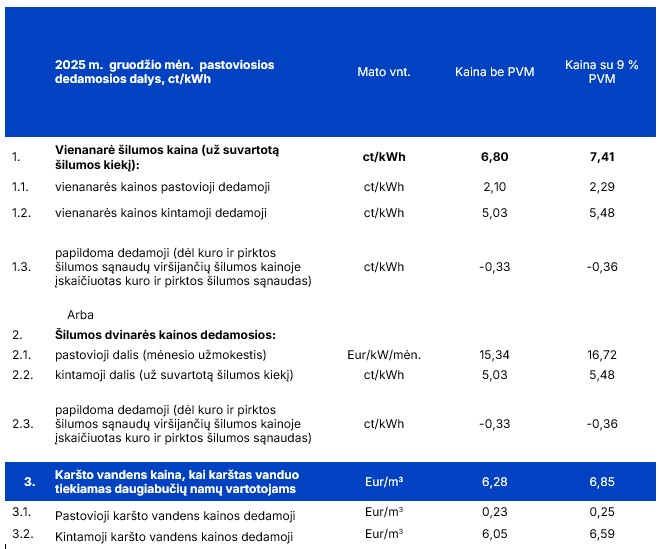 - 2025 m. karšto vandens kainų dedamosios (galioja nuo 2025 m. rugpjūčio 1 d.)