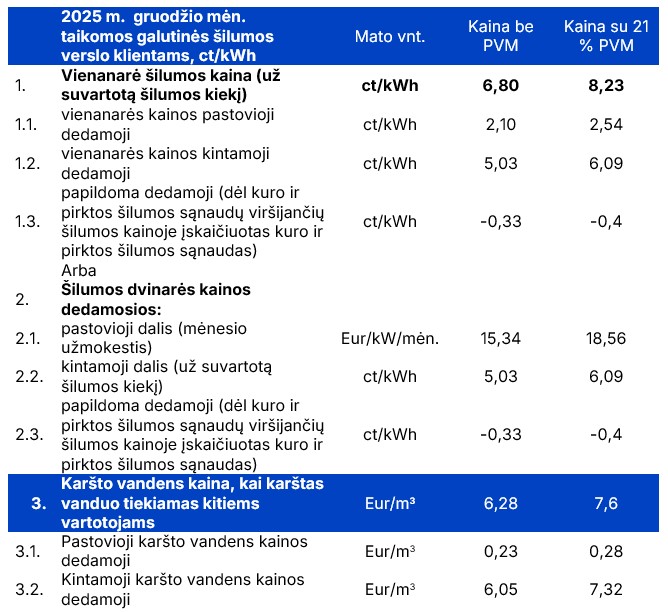 - 2025 m. karšto vandens kainų dedamosios (galioja nuo 2025 m. rugpjūčio 1 d.)